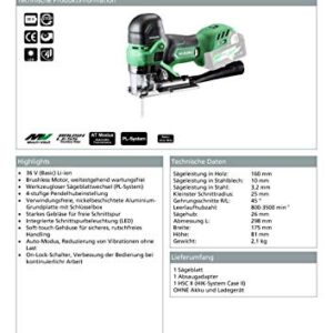 HiKOKI Akku-Stichsäge CJ36DB (36V, Li-Ion, Brushless, LED, Transportkoffer) – ohne Akkus und Ladegerät