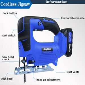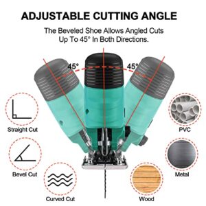 21V Akku-Stichsäge mit 2,0Ah Akku & Ladegerät, 2600SPM, 26mm Hubhöhe, 45° Schnittwinkel, 4 Orbitalpositionen, schnellem Klingenwechsel und 10 Sägeblättern. Ideal für Gehrungsschnitte.