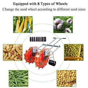 Saatstreuer mit 8 Saatplatten und zweireihiger Aussaat, Handschubrollen-Saatgutpflanzer, manueller Sämaschinenstreuer für bis zu 20 Samensorten, Mais und Sojabohnendünger (6 Monate)