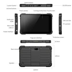 8″ Field Tablet PC Intel Quad Core Z3735F, 2GB RAM, 64GB, Windows 10 Home, 4G LTE, GPS, IP67, MIL-STD-810G, 7800mAh Batterie für Unternehmen im Feld
