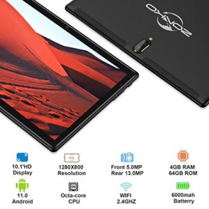 ZONKO Tablet 10 Zoll 4G LTE Dual SIM, Android Tablett mit Tastatur Maus Hülle, 4GB RAM+64GB ROM (128GB TF), SC9863 Octa-Core Doppelkamera 1080P FHD 6000mAh Akku, GPS BT 4.2 WLAN, Schwarz