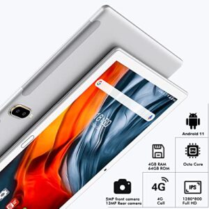 Tablet 10 Zoll Android 4G LTE mit 2 SIM Slot, 4GB RAM, 64GB ROM (erweiterbar auf 128GB), Tastatur, Maus, Stift, Octa Core, 1080P FHD, SD Typ-C, 6000mAh, 13 MP Kamera, Bluetooth, WiFi, GPS, OTG (Silver).