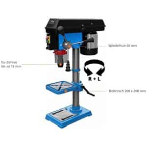 Scheppach DP16VL Tischbohrmaschine | vielseitig für Holz, Metall und Kunststoffe | Positionslaser | max. 16 mm Bohrfutter | 500 W