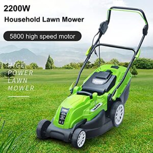 Elektrischer Rasenmäher mit Klappgriff und Hochleistungs-Vertikutierer, inklusive abnehmbarem 45-l-Grasfangkorb und kabelgebundenem Rasenkehrer mit 2200 W und 20 m Kabel.