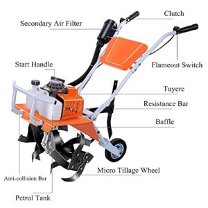 DJLOOKK 2,2 kW Motorhacken, Grubber für Benzinfräsen, 2-Takt-Benzinmotorhacke, Akku-Rasen-Vertikutierer mit 4 Pinnenblättern, Gartenfräsen-Rotavator für Bodenlockerung