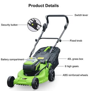 36V Akku-Rasenmäher mit Faltbarem bürstenlosem Vertikutierer, 4Ah-Akku, Ladegerät, 6 verstellbaren Höhen und 40L Grasfangkorb zum Trimmen von Gartenrasen.