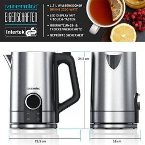 Arendo Edelstahl Wasserkocher mit Temperatureinstellung 40-100 Grad LED Display Modell DIVINE 1,7 Liter 2200 W Teekocher mit Temperaturanzeige GS