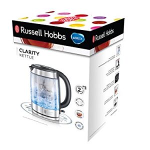 Russell Hobbs Wasserkocher Glas [BRITA MAXTRA+ Clarity] (1l+0,5l Filtereinsatz, 2200W, LED Beleuchtung, inkl. Filterkartusche, Kalkfilter, Kartuschenwechselanzeige) Teekocher 20760-57