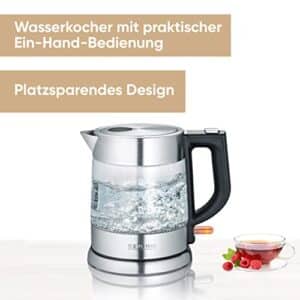 SEVERIN Glas Wasserkocher WK 3468, leistungsstarker und kompakter Wasserkocher in hochwertigem Design, elektrischer Wasserkocher mit Kalkfilter, edelstahl/schwarz