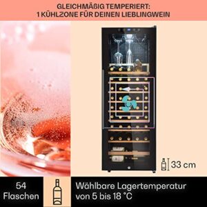 Klarstein Weinkühlschrank mit Glastür, 1 Zone, freistehend, klein, mit UV-Schutz, 4-18°C, 54 Flaschen
