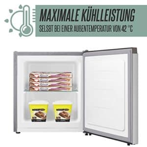 HEINRICHS Mini Gefrierschrank 34L, leise (39db), mit wechselbarem Türanschlag und bis zu -18°C. Perfekt für Büro, Camping und Outdoor. (Edelstahl/Inox)